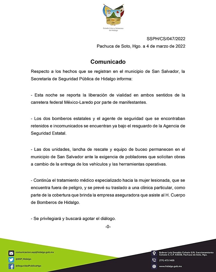 Respecto a los hechos que se registran en el municipio de San Salvador, la SSPH informa: agendahidalguensemarzo 4, 2022Información Navegación de entradas AnteriorSiguiente Comparte esto: Comparte en Facebook (Se abre en una ventana nueva) Facebook Compartir en X (Se abre en una ventana nueva) X Me gusta esto:Me gusta Cargando... Relacionado