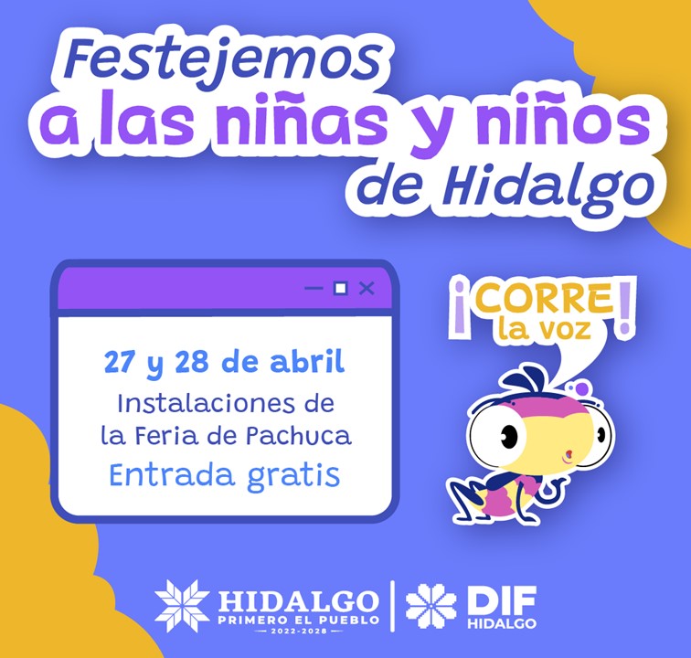 Festejemos a las niñas y niños de Hidalgo ¡Corre la voz! agendahidalguenseabril 17, 2023Información Navegación de entradas AnteriorSiguiente Comparte esto: Comparte en Facebook (Se abre en una ventana nueva) Facebook Compartir en X (Se abre en una ventana nueva) X Me gusta esto:Me gusta Cargando... Relacionado