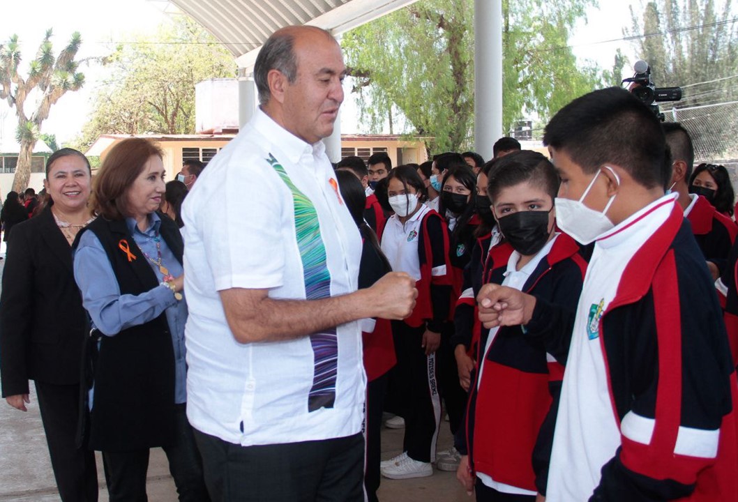 Posteriormente, el titular de la SEPH entregó reconocimientos simbólicos a niñas y niños que participaron en los Diálogos Ciudadanos en la Escuela Secundaria General Moisés Sáenz. Ahí felicitó al estudiantado por participar y dar a conocer sus necesidades, inquietudes y propuestas para llevar a Hidalgo a alcanzar su máximo potencial.