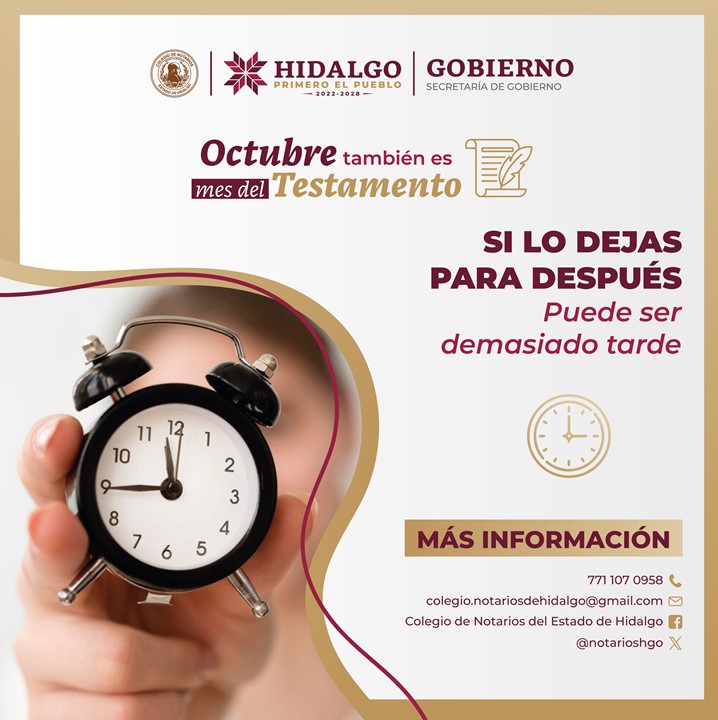 ¡Octubre, también es mes del #TestamentoHidalgo! agendahidalguenseoctubre 18, 2023Información Navegación de entradas AnteriorSiguiente No pierdas la oportunidad de proteger el patrimonio de tu familia. ¡Es un acto de amor y responsabilidad! Acércate a la notaría de tu confianza y asegura un futuro tranquilo. Comparte esto: Comparte en Facebook (Se abre en una ventana nueva) Facebook Compartir en X (Se abre en una ventana nueva) X Me gusta esto:Me gusta Cargando... Relacionado