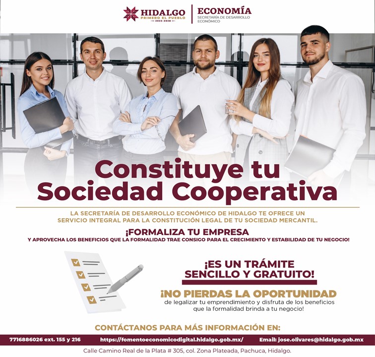Constituye tu Sociedad Cooperativa agendahidalguensefebrero 17, 2024Información Navegación de entradas AnteriorSiguiente https://fomentoeconomicodigital.hidalgo.gob.mx Comparte esto: Comparte en Facebook (Se abre en una ventana nueva) Facebook Compartir en X (Se abre en una ventana nueva) X Me gusta esto:Me gusta Cargando... Relacionado