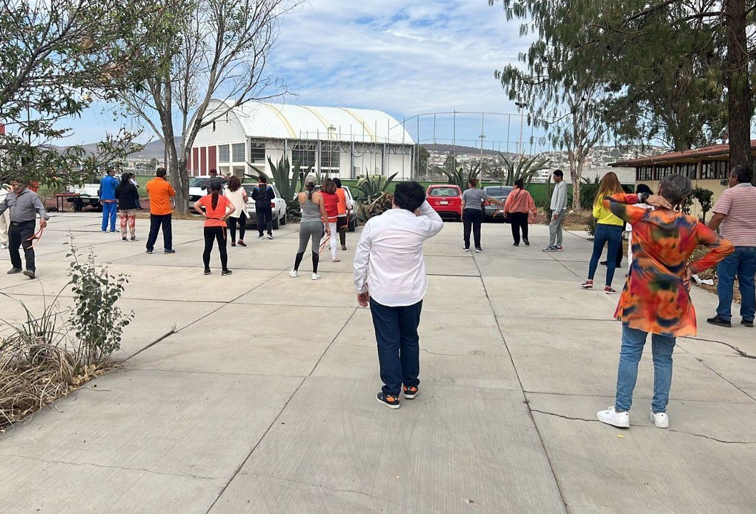 Al ritmo de la música, el instructor Jaime Rodríguez Haro, comenzó la dinámica con ejercicios aeróbicos, actividad en la que las y los asistentes participaron de manera entusiasta.