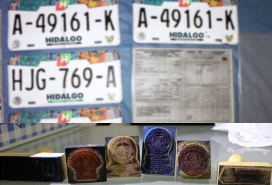En el inmueble intervenido, ubicado en la calle Zafiro, de la colonia Los Prismas, en Pachuca de Soto, se aseguró papelería, troqueles y hologramas oficiales, así como sellos de la Secretaría de Movilidad y Transporte, de una notaría pública y de la PGJEH.