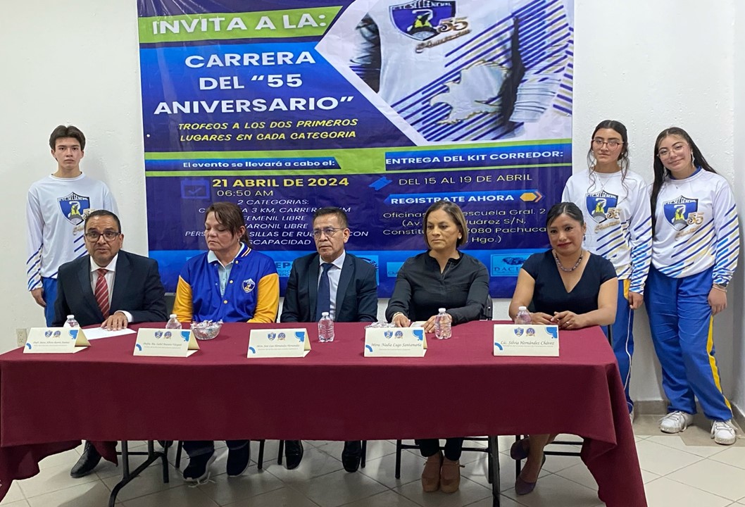Pachuca, Hgo.-En el marco del festejo de los 55 años de la institución, directivos de la escuela secundaria General 2 de Pachuca, presentaron en las instalaciones del Instituto Hidalguense del Deporte (INHIDE), la carrera atlética de aniversario, la cual se llevará a cabo el próximo 21 de abril del presente año.