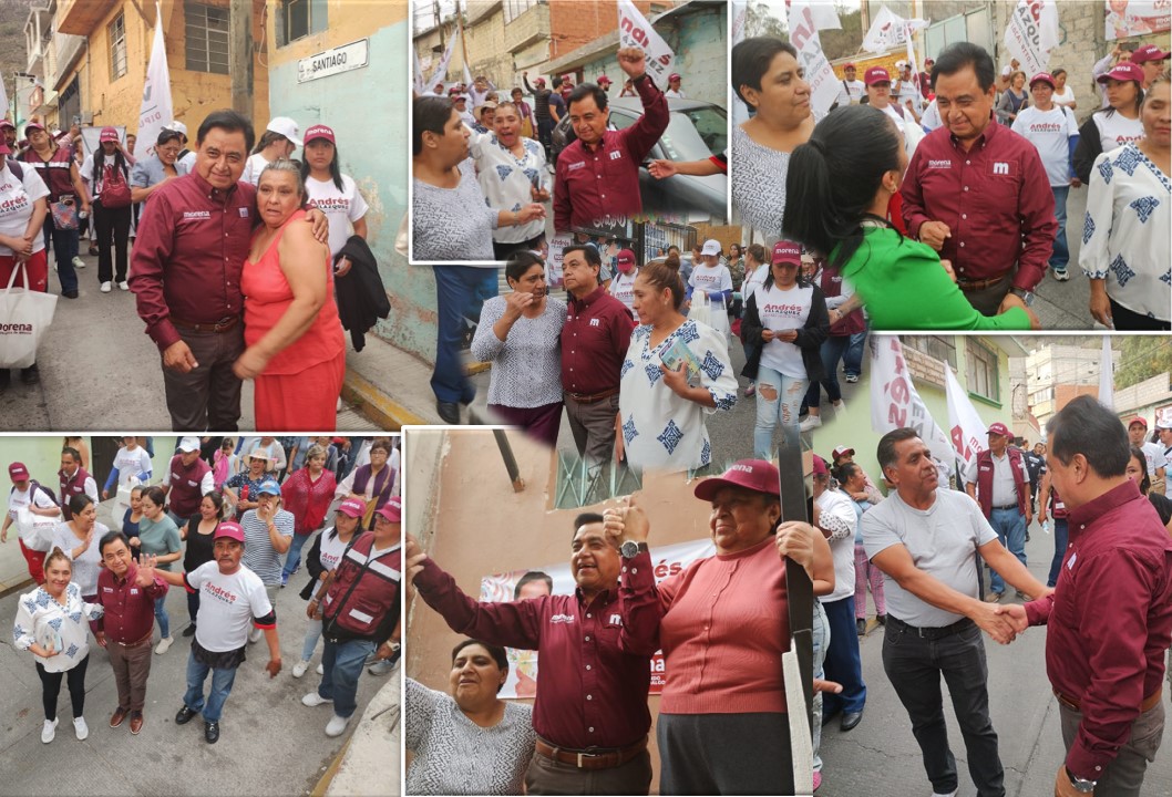 Pachuca, Hgo.-Acompañado por familias del barrio Lucero, Andrés Velázquez Vázquez, candidato de Sigamos Haciendo Historia a diputado local del distrito XIII, afirmó que sólo a través de ejercer el derecho al voto, al acudir a las urnas y con la participación ciudadana, llegará la transformación para beneficio de todos y todas.