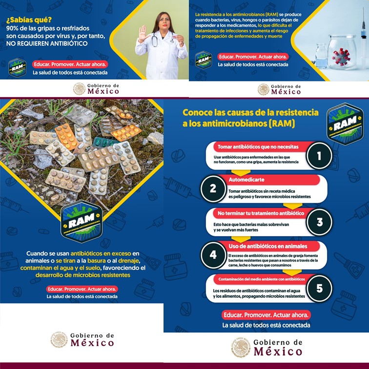 A través de una campaña educativa y preventiva, bajo el lema: “Educar. Promover. Actuar ahora. La salud de todos está conectada”, se busca la prevención de la RAM y se reitera la importancia de tomar acciones, para reducir la aparición y propagación de infecciones resistentes a los antibióticos.