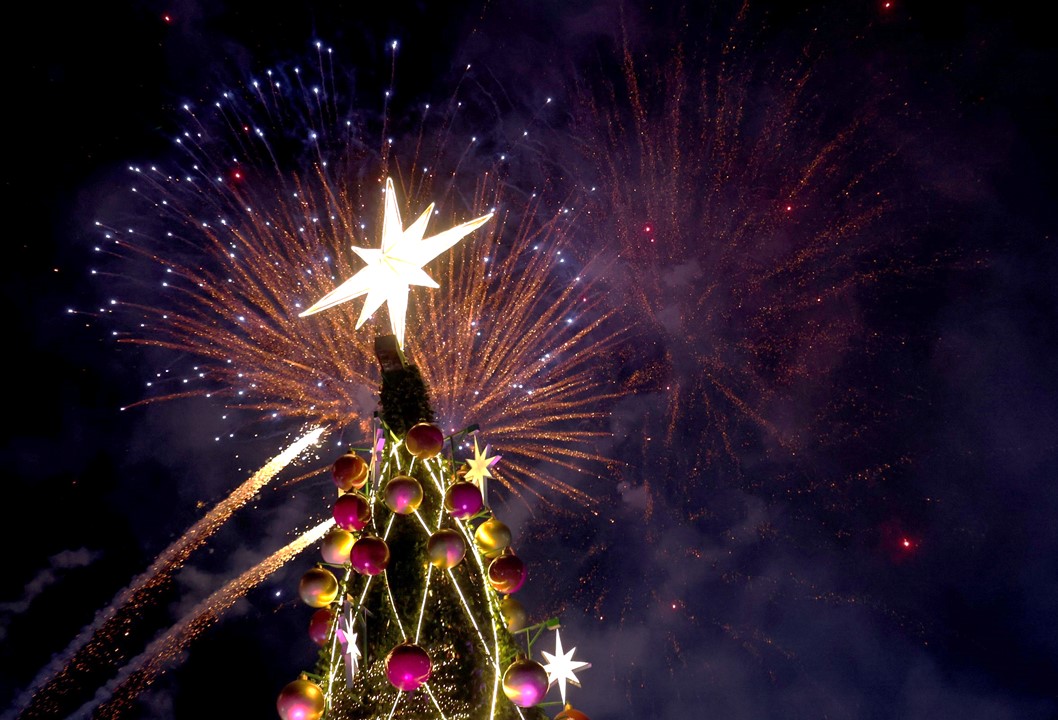 Al pie del tradicional árbol de más de 30 metros de altura, rodeado por una pantalla multicolor y decorado con relucientes estrellas, así como esferas, fue el sitio donde el mandatario y su esposa iniciaron las fiestas decembrinas. Tras oprimir un “botón”, cientos de luces iluminaron la explanada pública, mientras los juegos pirotécnicos resonaban a la distancia para dar la bienvenida a la Navidad en Hidalgo.