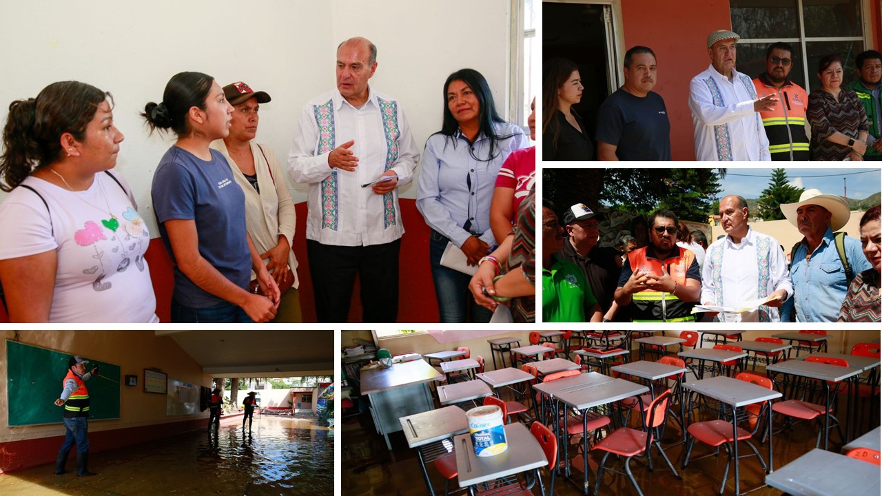 El secretario de Educación Pública de Hidalgo, Natividad Castrejón Valdez, supervisó algunos de los planteles escolares que resultaron afectados por las recientes lluvias en Metztitlán, en donde anunció el inicio de los trabajos de desazolve, desinfección y limpieza general en escuelas de los 26 municipios afectados.