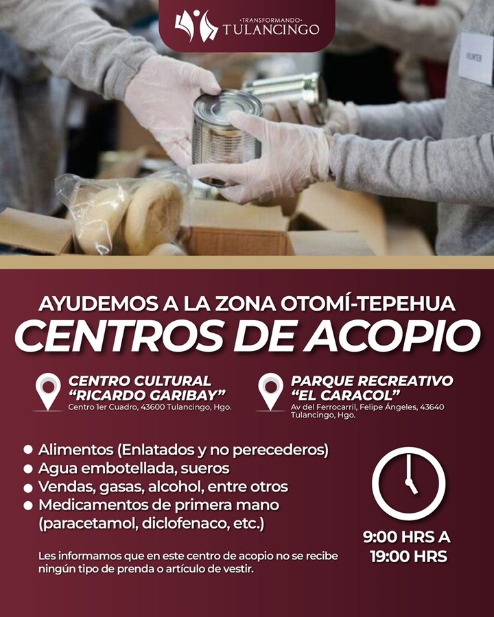 El Gobierno Municipal de Tulancingo, informa a la ciudadanía que los únicos centros de acopio son: