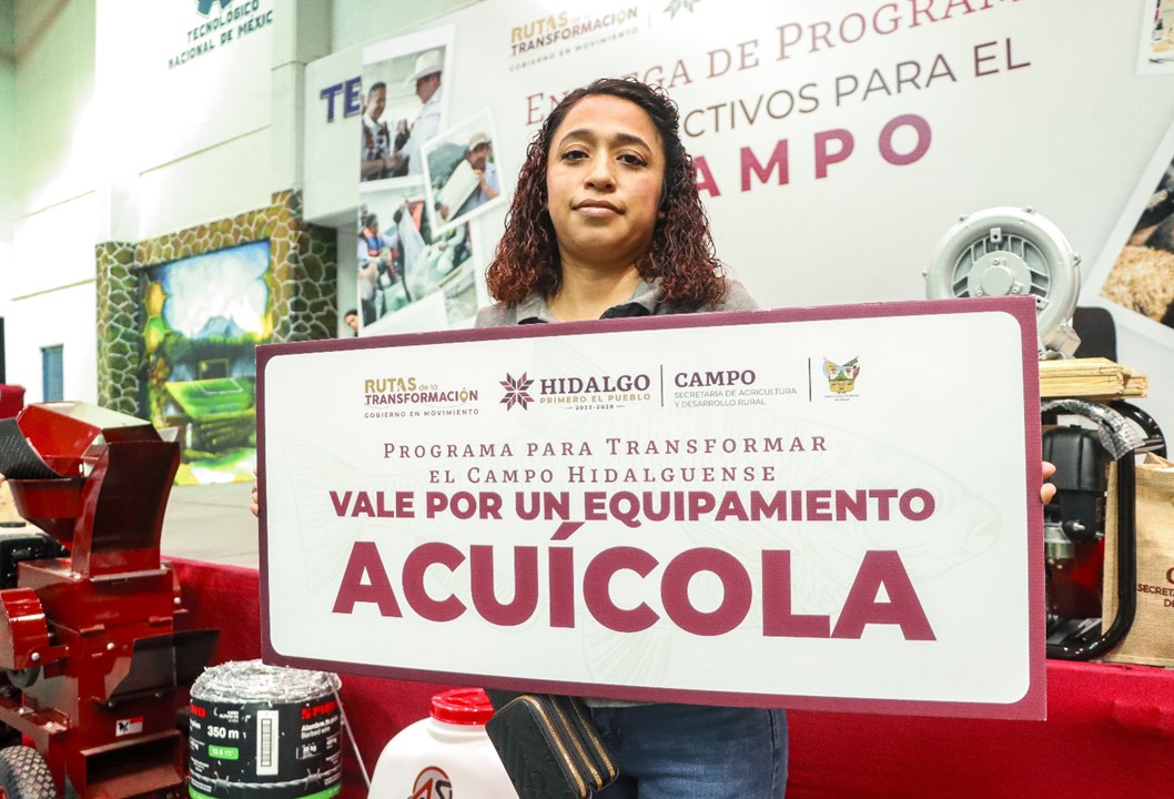 Entre las beneficiarias se encuentra Montserrat Gutiérrez Trejo, originaria de Huejutla, quien recibió un apoyo acuícola consistente en crías de peces, con el objetivo de emprender un nuevo proyecto que le genere un ingreso.