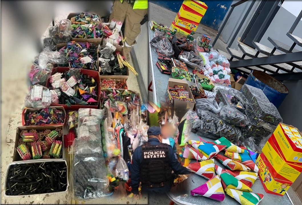 Derivado de estos despliegues, se logró el aseguramiento de 826.8 kilogramos de pirotecnia en 16 municipios del estado, gracias a recorridos estratégicos y atención a reportes ciudadanos, principalmente en zonas de alta concentración poblacional y puntos identificados como prioritarios.