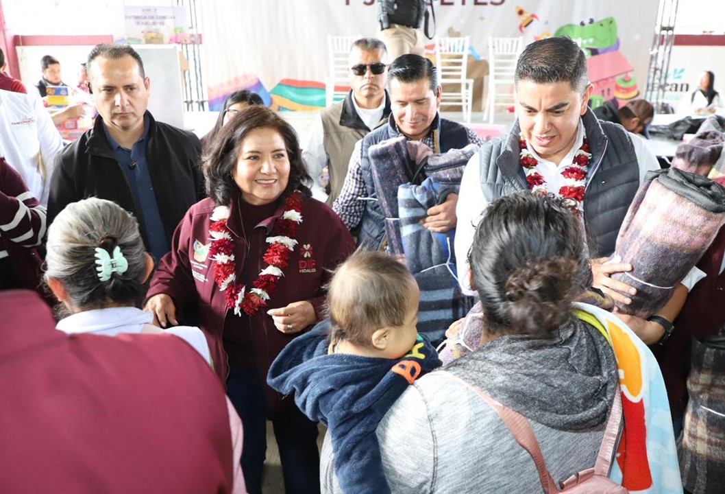 La presidenta del Patronato del DIF Hidalgo, Edda Vite Ramos, y el titular del organismo, Ricardo Alvizo Contreras, dieron seguimiento a las campañas “Este invierno, abrígate” y “Ruta de la Alegría”, cuyo objetivo es mitigar los efectos del frío y generar bienestar, especialmente entre la niñez.
