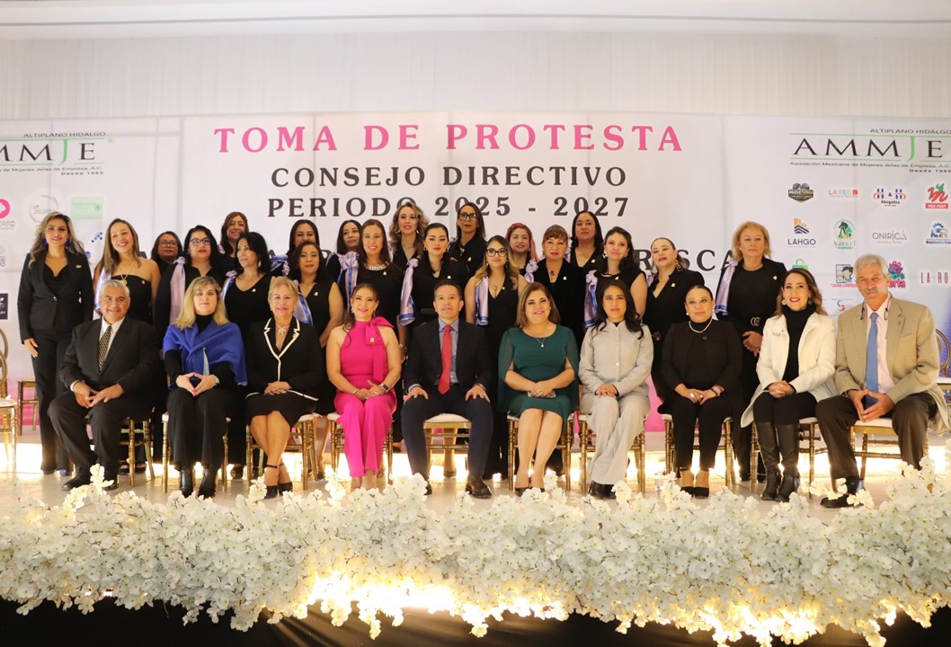 Pachuca, Hgo.-En representación del gobernador Julio Menchaca Salazar, el secretario de Desarrollo Económico de Hidalgo, Carlos Henkel Escorza, tomó protesta a las integrantes de la nueva Mesa Directiva de la Asociación Mexicana de Mujeres Jefas de Empresa (AMMJE) Altiplano.