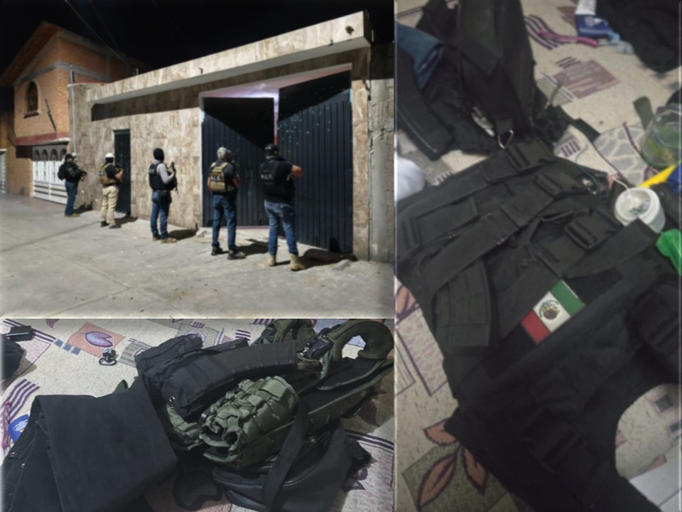 Durante el operativo fueron aseguradas armas largas, chalecos balísticos, cargadores y cartuchos útiles.