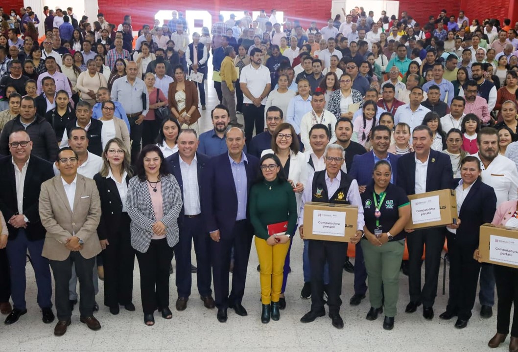 Pachuca, Hgo.-Con el respaldo del gobernador Julio Menchaca Salazar, el secretario de Educación Pública, Natividad Castrejón Valdez, entregó 520 equipos de cómputo a docentes afectados por la vaguada monzónica, como parte de las acciones del gobierno estatal para la continuidad educativa y fortalecer el trabajo de quienes impulsan el desarrollo y bienestar de sus comunidades.