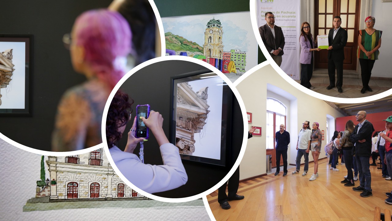 Pachuca. – El Centro Cultural Universitario “La Garza” de la Universidad Autónoma del Estado de Hidalgo (UAEH) alberga “Postales de Pachuca: Memoria en acuarela”, una exposición que reúne más de 40 pinturas y fotografías de distintos rincones de la “Bella Airosa”, con el propósito de rescatar, difundir y resignificar el patrimonio arquitectónico que la caracteriza.