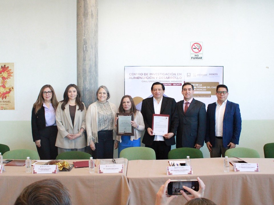 San Agustín Tlaxiaca, Hgo.-Con el objetivo de fortalecer la investigación científica aplicada al desarrollo social y productivo de la entidad, se formalizó el relevo en la titularidad de la subsede Hidalgo del Centro de Investigación en Alimentación y Desarrollo (CIAD), donde fue designado Tomás Jesús Madera Santana como nuevo coordinador.