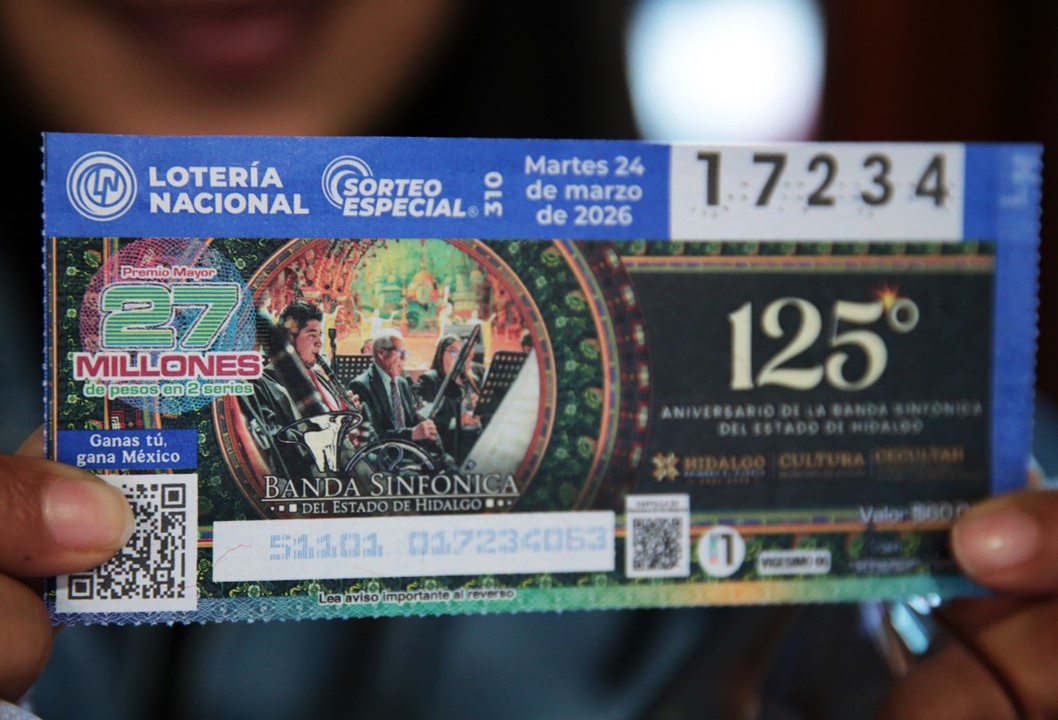 Pachuca, Hgo.-La Lotería Nacional rendirá homenaje a la Banda Sinfónica del Estado de Hidalgo (BSEH) al dedicarle el Sorteo Especial No. 310, como reconocimiento a sus 125 años de trayectoria artística, consolidándola como una de las instituciones musicales más representativas del estado.