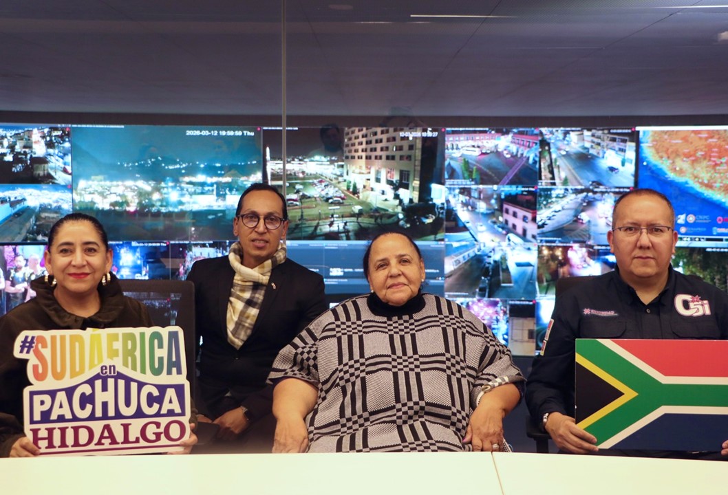 Pachuca, Hgo.-Durante su visita a Hidalgo, la embajadora de Sudáfrica en México, Beryl Rose Sisulu, recorrió las instalaciones del Centro de Control, Comando, Comunicaciones, Cómputo, Coordinación e Inteligencia (C5i), donde constató el sistema de monitoreo tecnológico con cerca de 2 mil pantallas operando las 24 horas, infraestructura que permite coordinar fuerzas de seguridad y realizar análisis de inteligencia para la prevención del delito a través de miles de cámaras que están distribuidas en todo el estado. Este modelo tecnológico y la capacidad operativa de la entidad han sido factores clave para que autoridades sudafricanas eligieran a Hidalgo como sede de entrenamientos de su selección nacional rumbo a la Copa Mundial de la FIFA 2026.