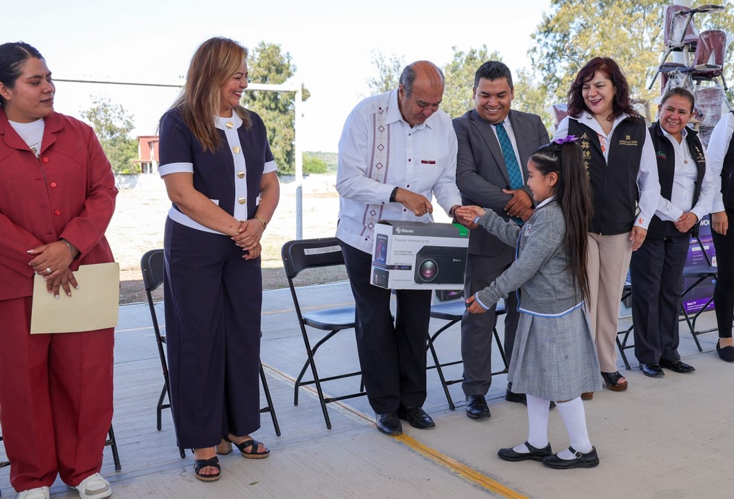 Asimismo, se dotó de equipamiento a 13 planteles, entre ellos un Centro de Atención Múltiple, jardines de niños, primarias, secundarias y telesecundarias. Los apoyos incluyeron mobiliario escolar y de oficina, proyectores, pantallas, computadoras, impresoras y reguladores, con una inversión de 1.2 millones de pesos.
