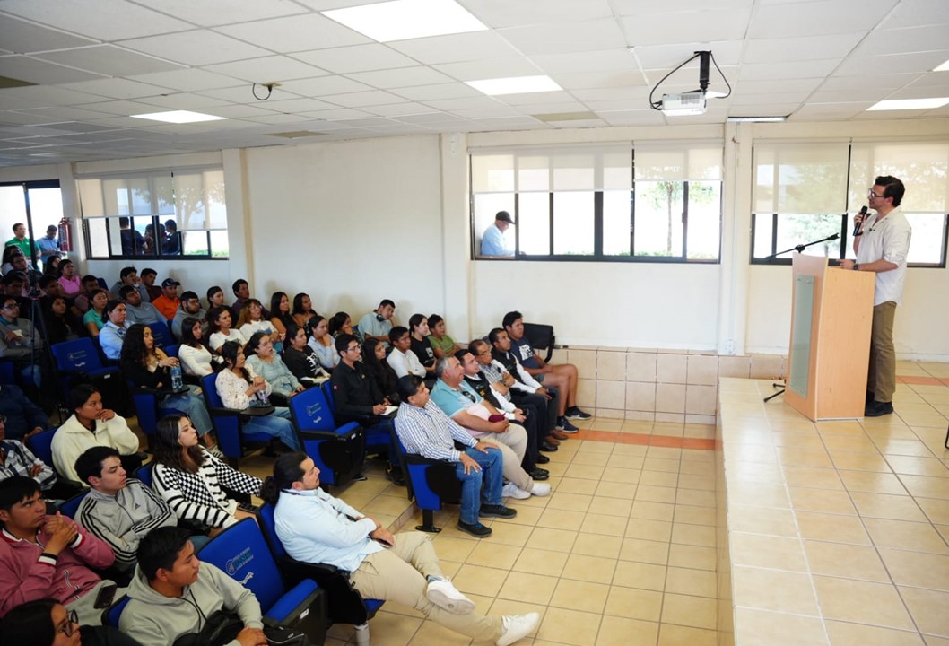 Pachuca, Hgo.-El titular de la Unidad de Planeación y Prospectiva de Hidalgo, Miguel Ángel Tello Vargas, sostuvo un encuentro con estudiantes del Instituto Tecnológico Superior de Huichapan (Iteshu), donde dio a conocer los programas de apoyo para las y los hidalguenses que deseen realizar estudios de posgrado.