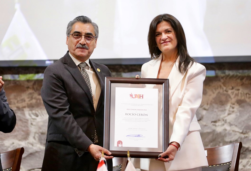 Pachuca, Hgo. – La comunidad estudiantil y docente de la Universidad Autónoma del Estado de Hidalgo (UAEH) rindió un homenaje a la escritora y poeta mexicana Rocío Cerón por su destacada labor en la promoción de la palabra escrita, en el marco del Día Mundial del Libro y el Derecho de Autor.
